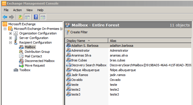 Caso queira, abra o Exchange Management Console e verifique se as contas realmente foram criadas