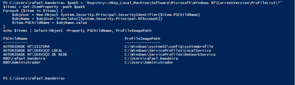 Muitas vezes precisamos verificar quais perfis de usuários existem em determinado computador, ao invés de verificar de forma manual através do Windows Explorer ou através das Propriedades do Sistema e que muitas vezes é um processo demorado, pois depende da quantidade de perfis, iremos realizar esta verificação de forma automatizada através do Windows Powershell.