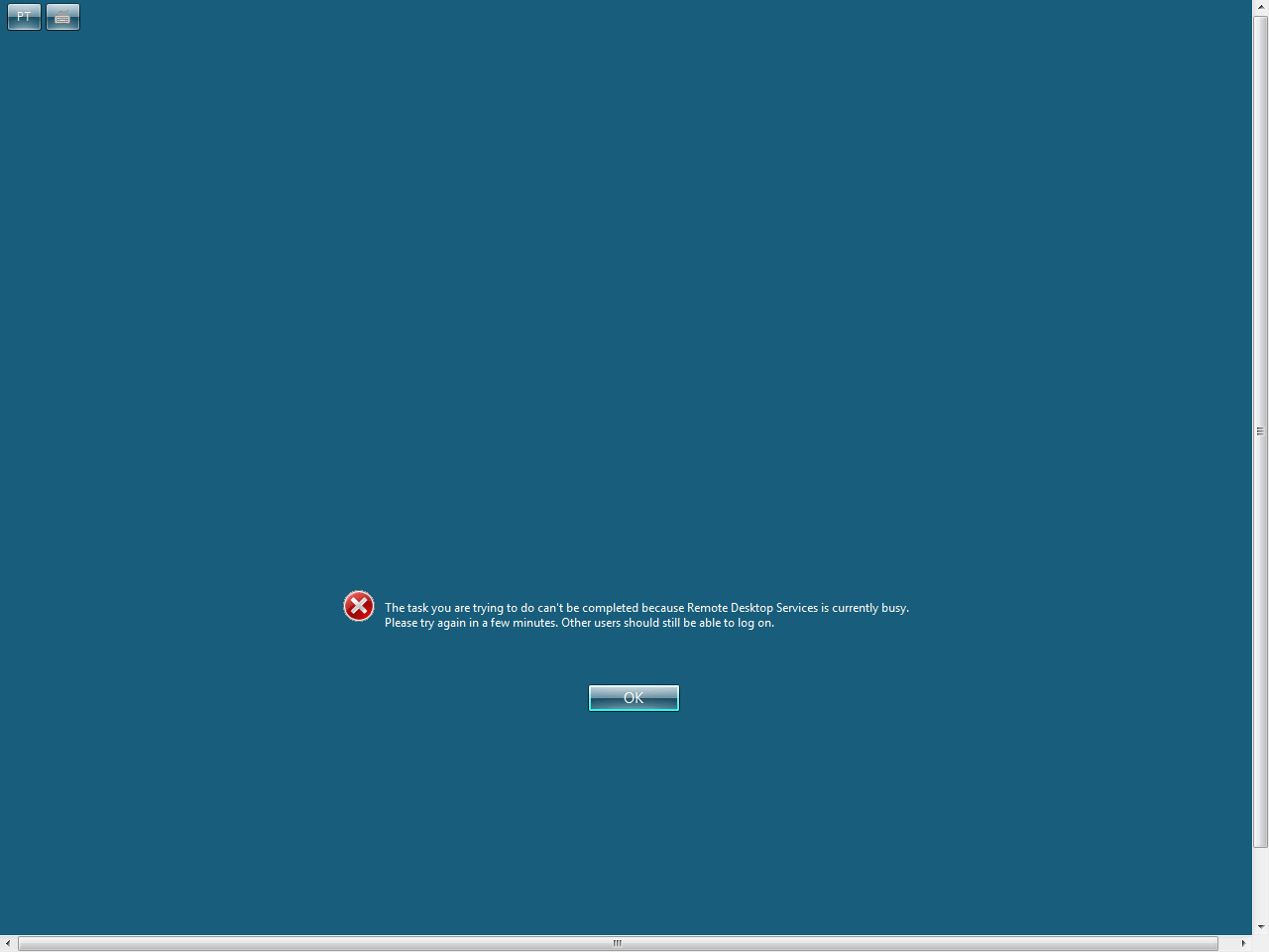 Após vários dias ligado, não é mais possível se conectar ao servidor, que apresenta as seguintes mensagens de erro na tentativa de logon.