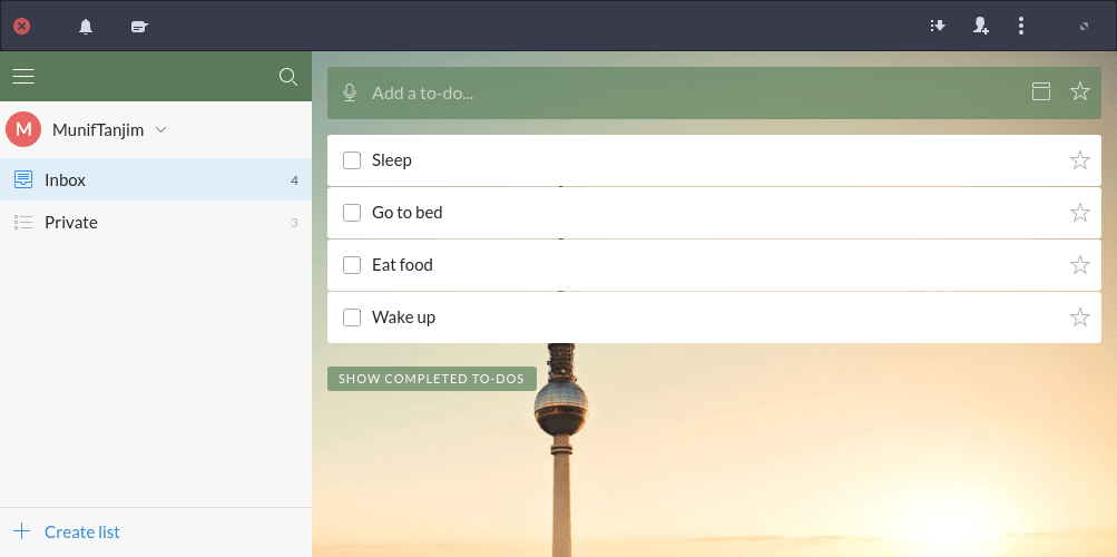 Inicialmente, ele só suportava o tema Elementary OS, mas mais tarde adicionou suporte para Ambiance, Arc e outros. Se você é usuário do Wunderlist e estava procurando um cliente Linux, você pode experimentá-lo. E se você notar algum bug, você pode enviar um problema no projeto GitHub.
