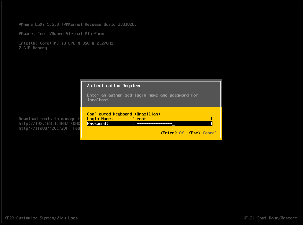 Futuramente iremos explanar passo a passo a instalação do sistema. Por hora, para este procedimento iremos utilizar uma Maquina Virtual, com a versão do ESXi 5.5 em execução.
