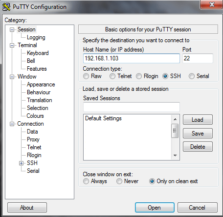 Com a utilização de um cliente de SSH, iremos executar um teste de acesso. No nosso caso, utilizaremos o PUTTY.